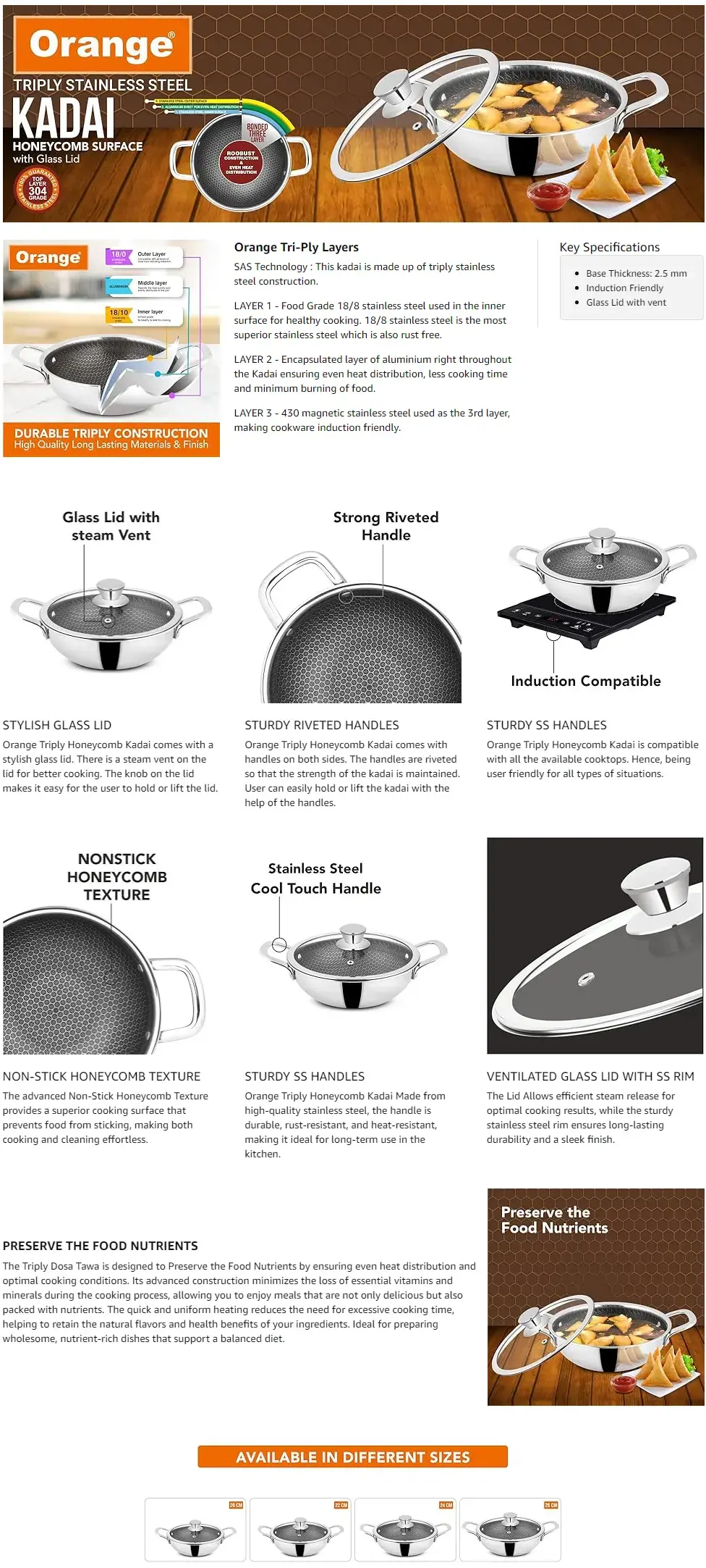 SAS Technology : This kadai is made up of triply stainless steel construction.